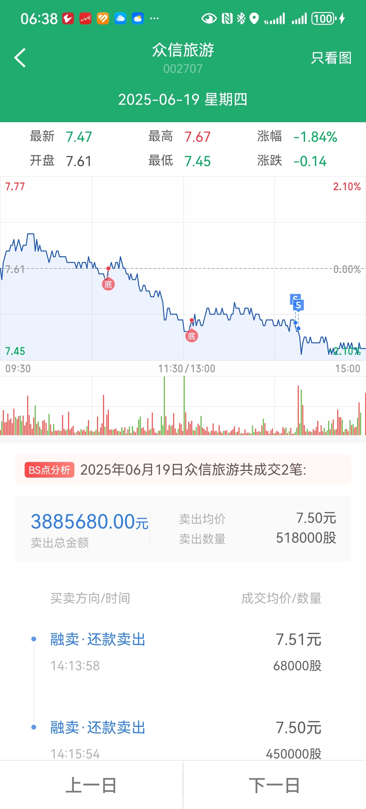 $众信旅游(SZ002707)$ 就告诉大家一件事,这票里面有脏东西,买入500个,亏80个走人,留点底仓省得删自选