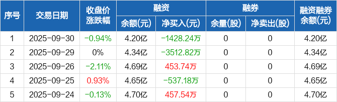 众信旅游:融资净偿还1428.24万元,融资余额4.2亿元(09-30)