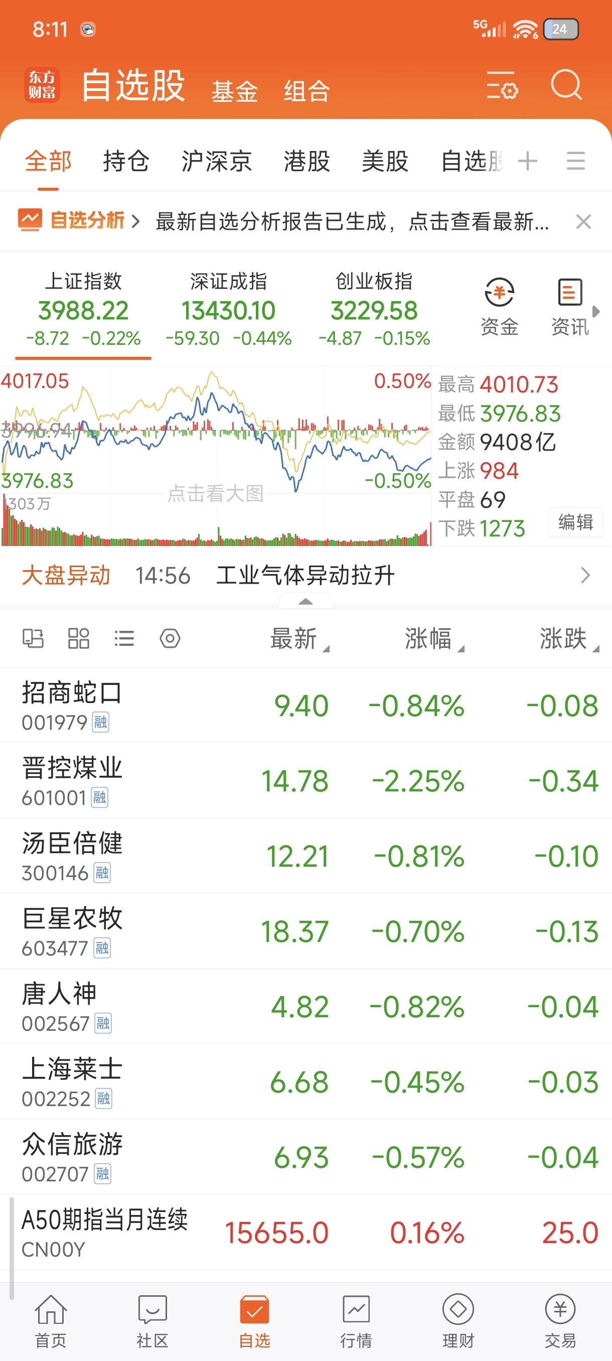 委托标的:买卖方向:笔记:谁能想到自选股全绿?