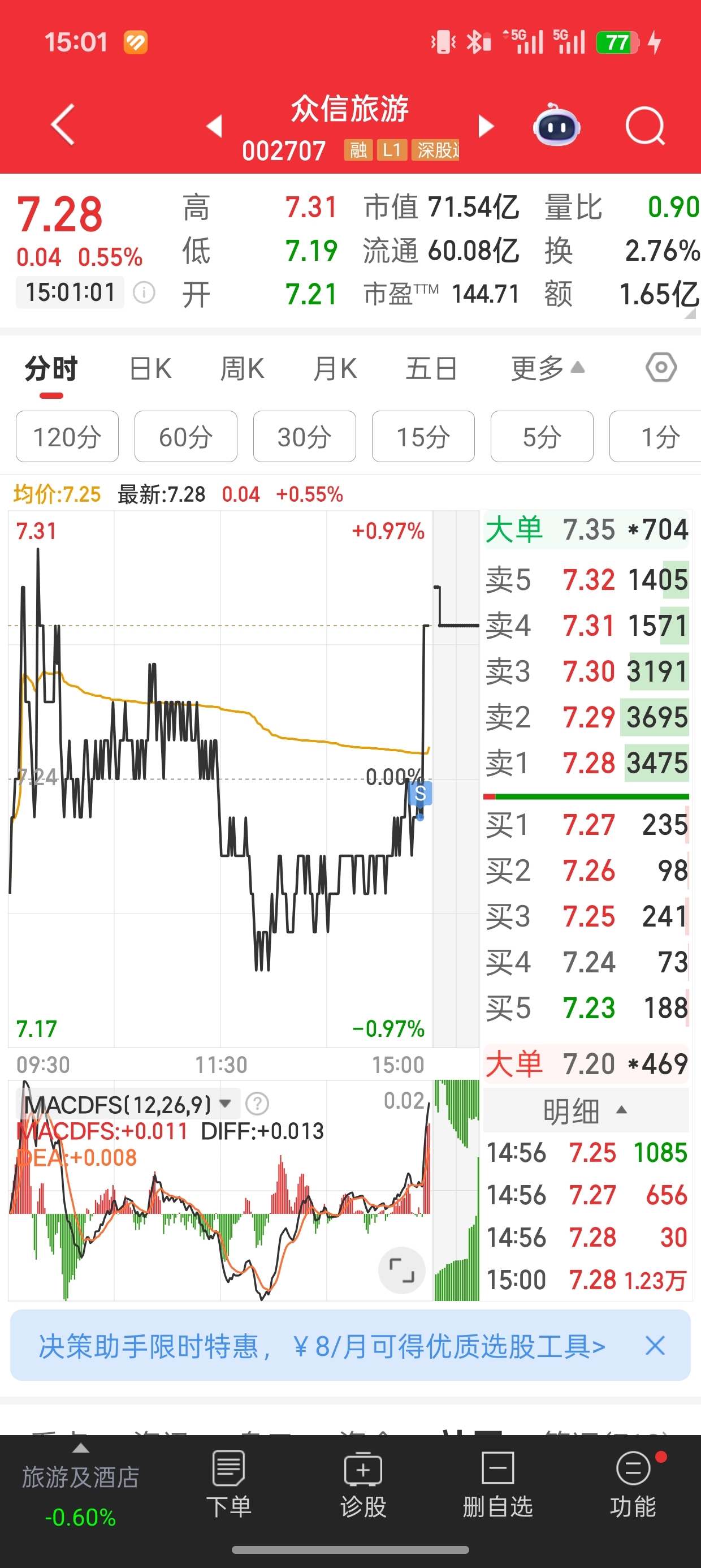 $众信旅游(SZ002707)$ 炒股这一块,我就问问还有sei