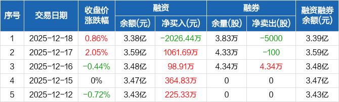 众信旅游:融资净偿还2026.44万元,融资余额3.38亿元(12-18)