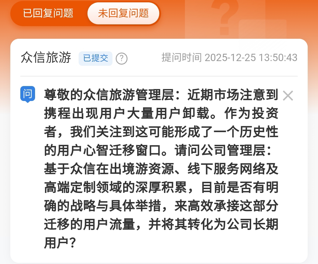 $众信旅游(SZ002707)$ 坐等董秘回复