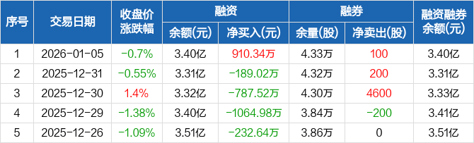众信旅游:融资净买入910.34万元,融资余额3.4亿元(01-05)