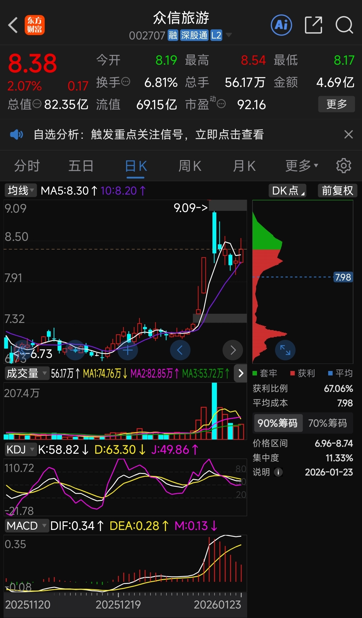 $众信旅游(SZ002707)$ 周内成交虽然较多,但底仓稳稳不动,显示主力十分自信,前途不可限量。