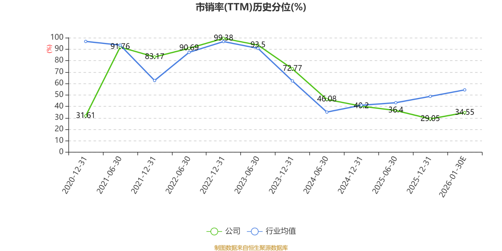 以本次披露业绩预告均值计算,公司近年市盈率(TTM)图如下所示: