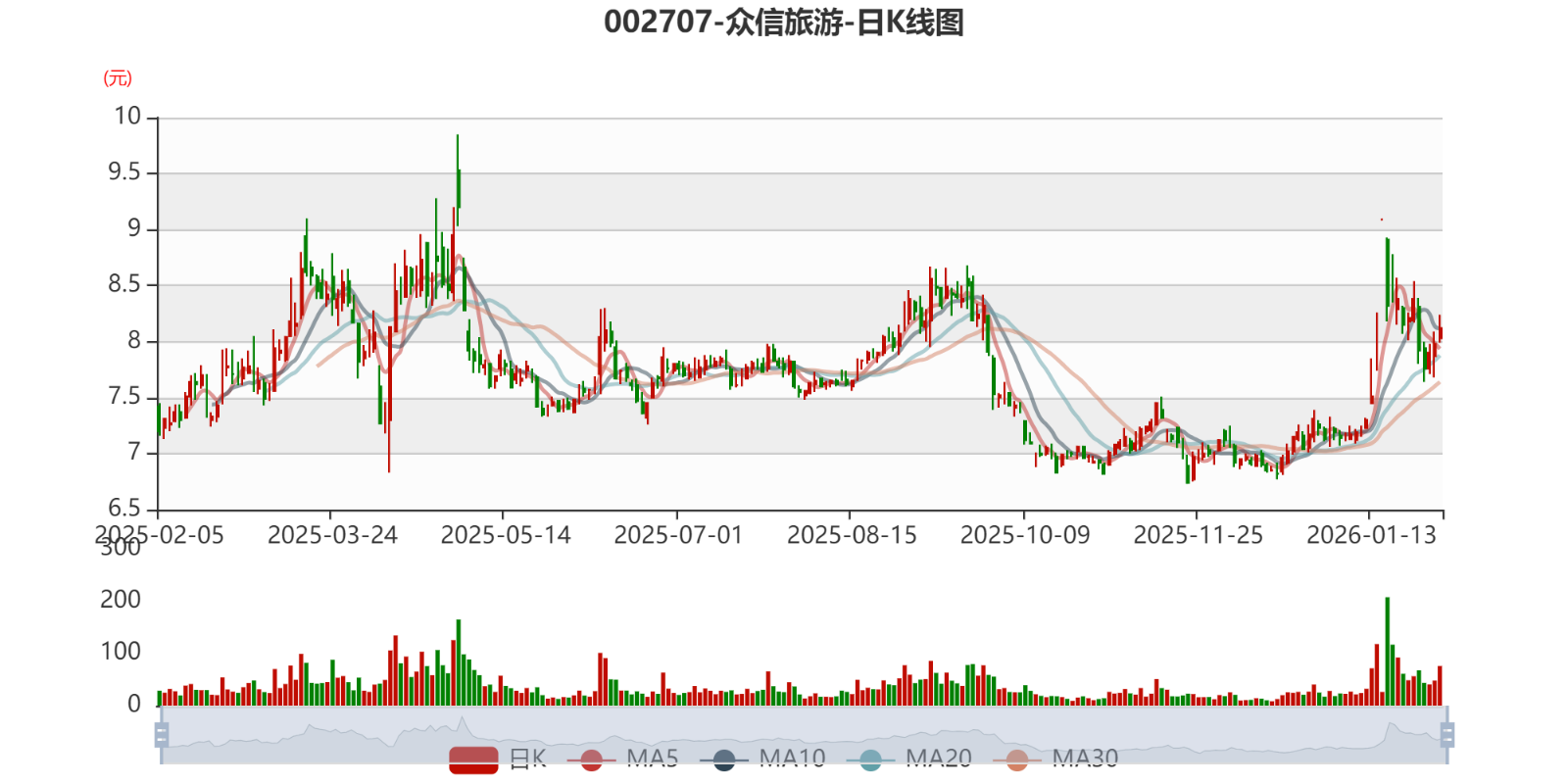 中证智能财讯众信旅游(002707)1月30日晚间披露2025年度业绩预告,预计2025年归母净利润500万元,同比下降95.28%;扣非净利润预计7000万元,同比下降33.44%;基本每股收益0.0051元/股。以1月30日收盘价计算,众信旅游目前市盈率(TTM)约为1595.93倍,市净率(LF)约8.61倍,市销率(TTM)约1.14倍。