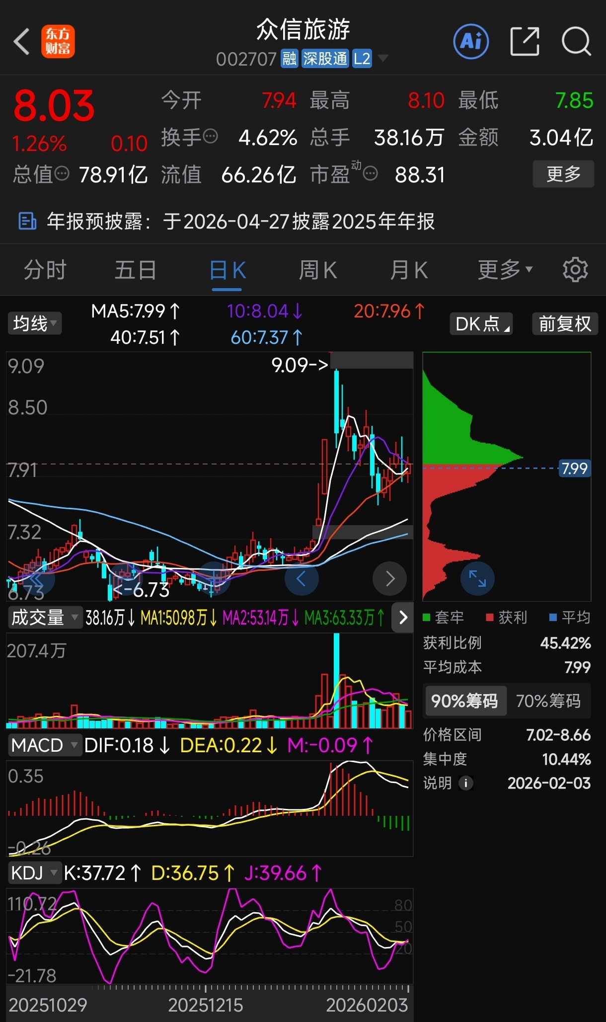 $众信旅游(SZ002707)$ 近两周以来底筹纹丝不动,显示了小散没有持仓的习惯,一轮上涨+下跌就都清仓了。月关通常是熬过去,所以月关不是小散,月关是主力木有办法又不得不喜欢得老登。