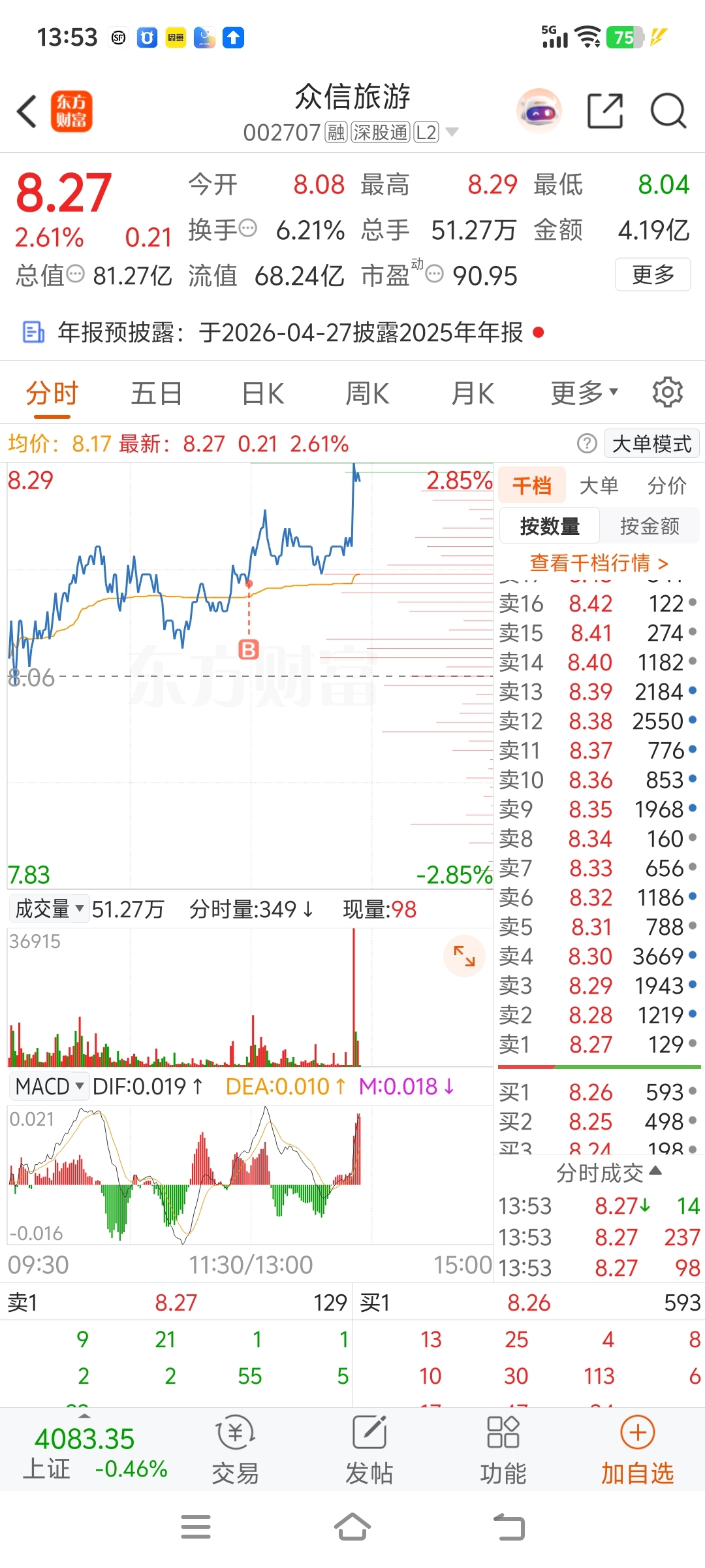 $众信旅游(SZ002707)$ 8.38 出,也不等你拉板