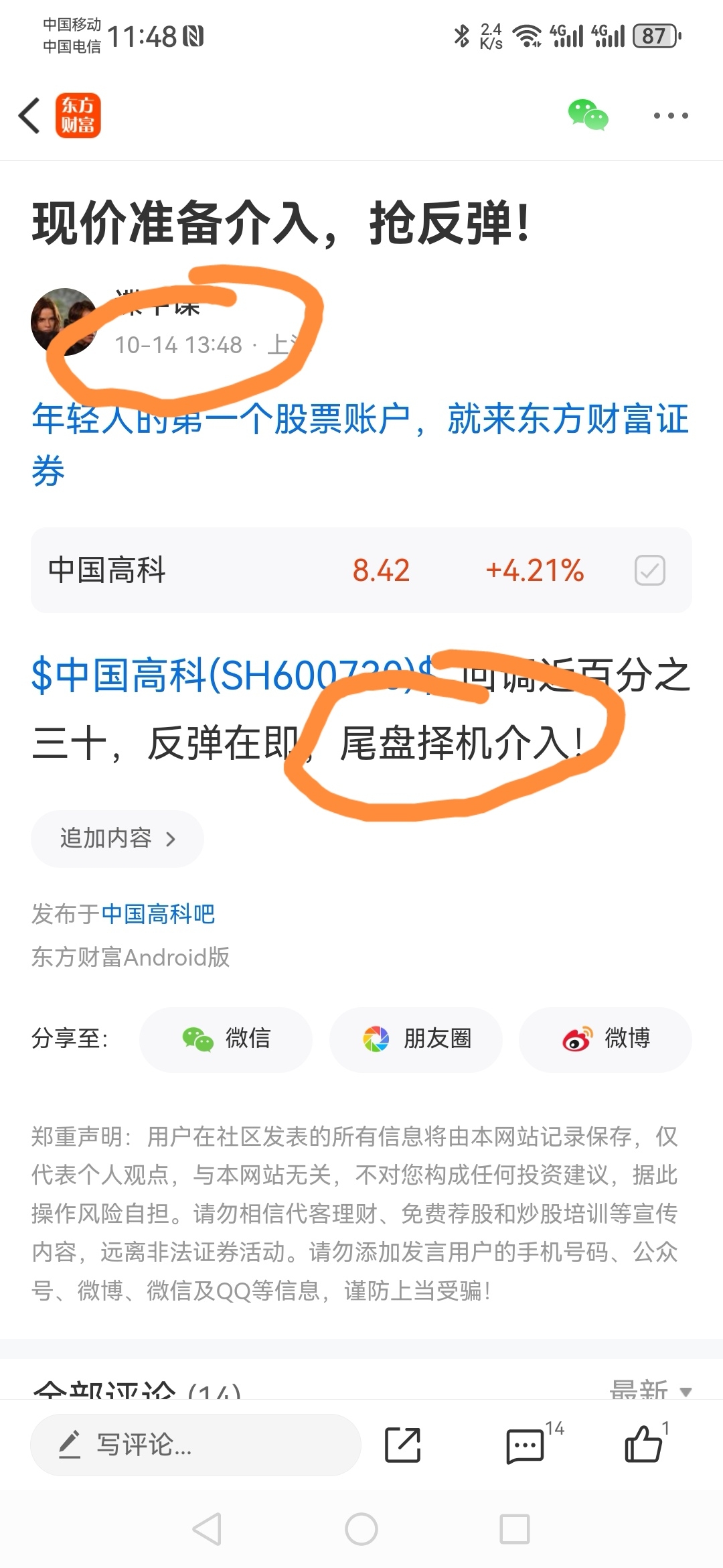 $光洋股份(SZ002708)$ $中国高科(SH600730)$ $吉峰科技(SZ300022)$ 今日上午光洋走势较弱,基本上在水下波动,上午最低已到我设定买入价位,尾盘择机准备买入,希望不要再象昨日上午发帖那样准备在8.60附近买入吉峰那样,到了8.63后立马拉升了,收盘8.90元,尾盘只好就进了600730,昨预测第一目标位已到,先出一部分。