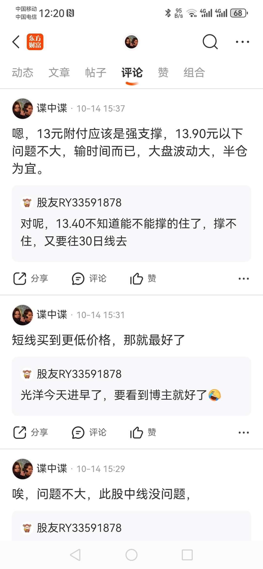 $光洋股份(SZ002708)$ 14日预测短线底部在13元附近,17日收在12.85,昨最高收在14元以上!今日回调,准备在13.30附近再次介入!