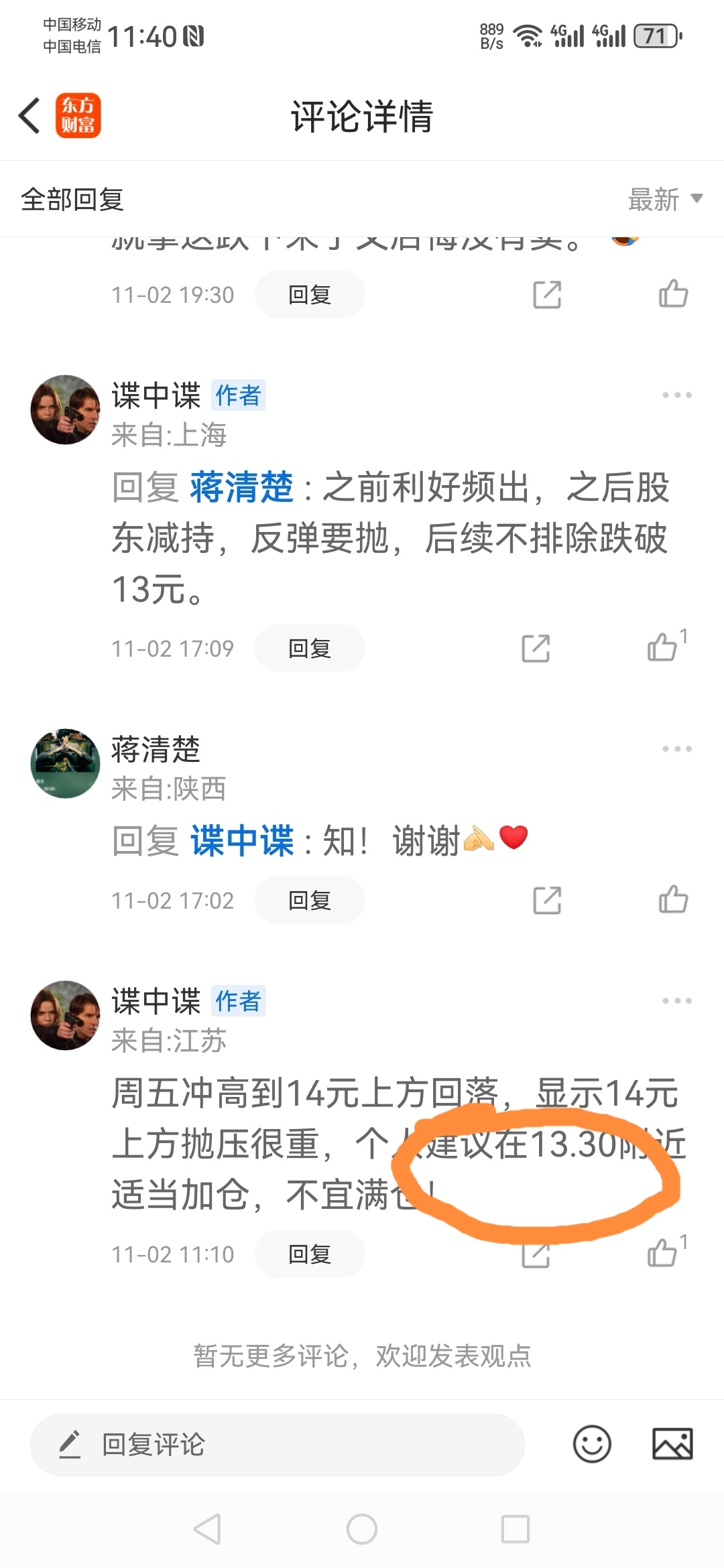$光洋股份(SZ002708)$ 周日提示13.30附近加仓,结果周一最低到13.38元,基本正确。提示14.00元上方抛压很重!结果今日早盘最高14.24元,如在上午冲高时抛出,日获利百分之四。另早盘走势较为难看,有拉高出货嫌疑,下次介入价位下调至13.00元附近。