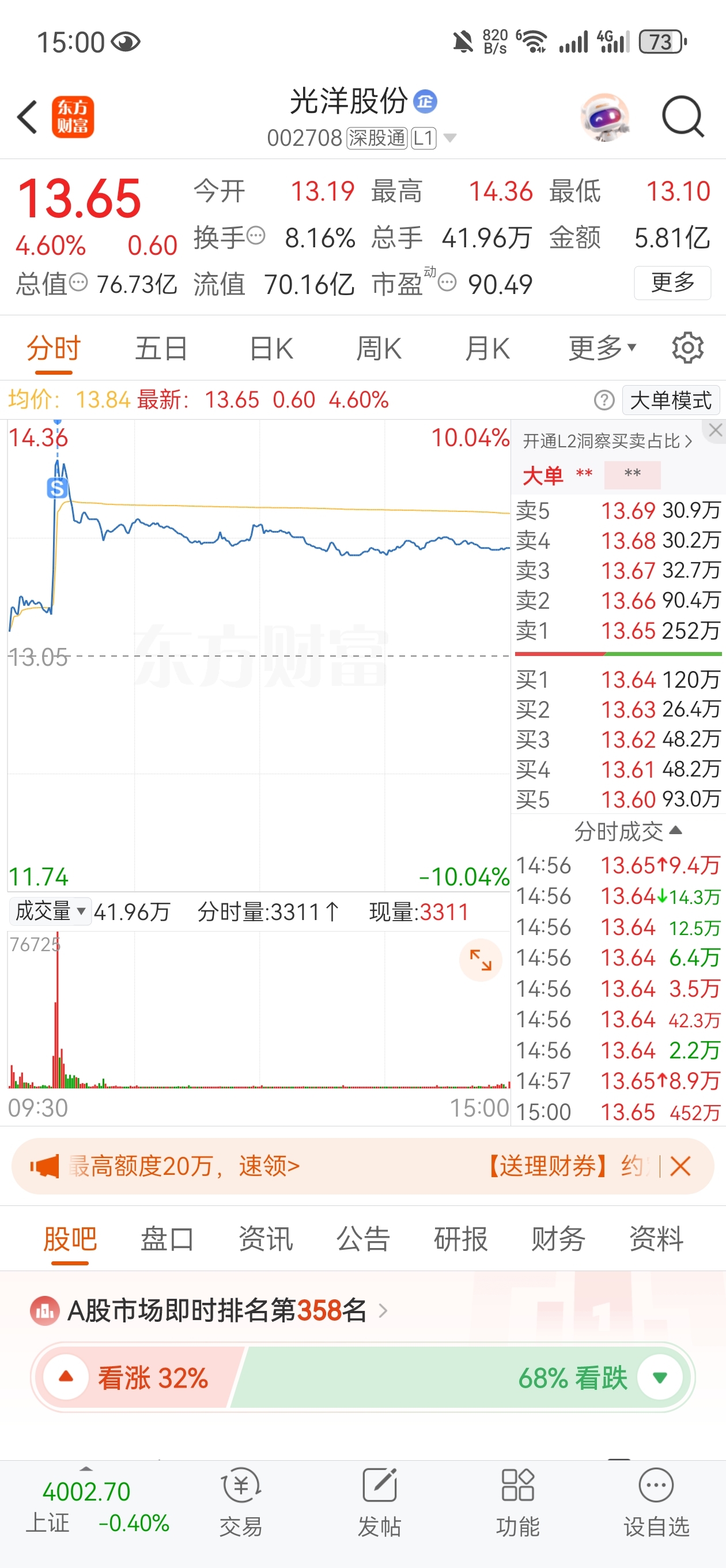 $光洋股份(SZ002708)$ 事实上它不是没有涨婷过,只不过是被秒了而已