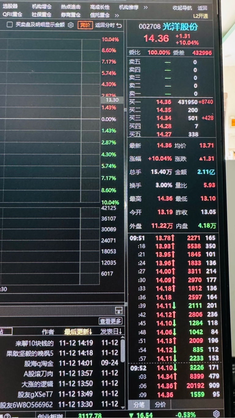 $光洋股份(SZ002708)$ 你们看下昨天,封板30秒,这些筹码,今天不一定走的啊。