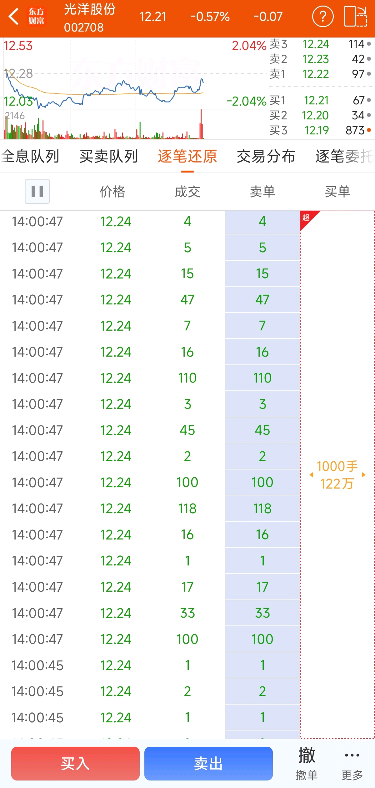 你们来看看这是什么单?一笔大单卡住,然后瞬间大量中单卖出