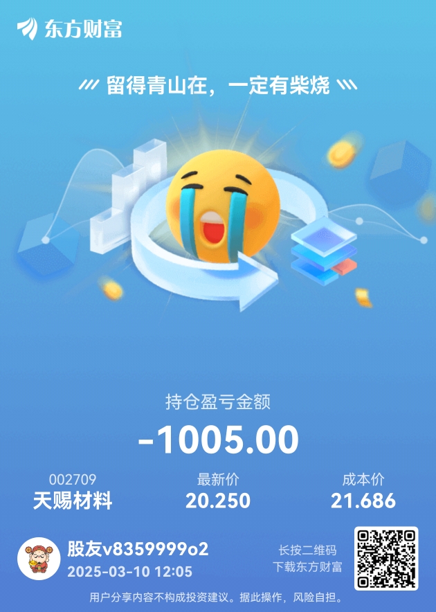 温馨提示: 1.根据《证券法》规定,禁止编造、传播虚假信息或者误导性信息,扰乱证券市场;2.用户在本社区发表的所有资料、言论等仅代表个人观点,与本网站立场无关,不对您构成任何投资建议。用户应基于自己的独立判断,自行决定证券投资并承担相应风险。《东方财富社区管理规定》