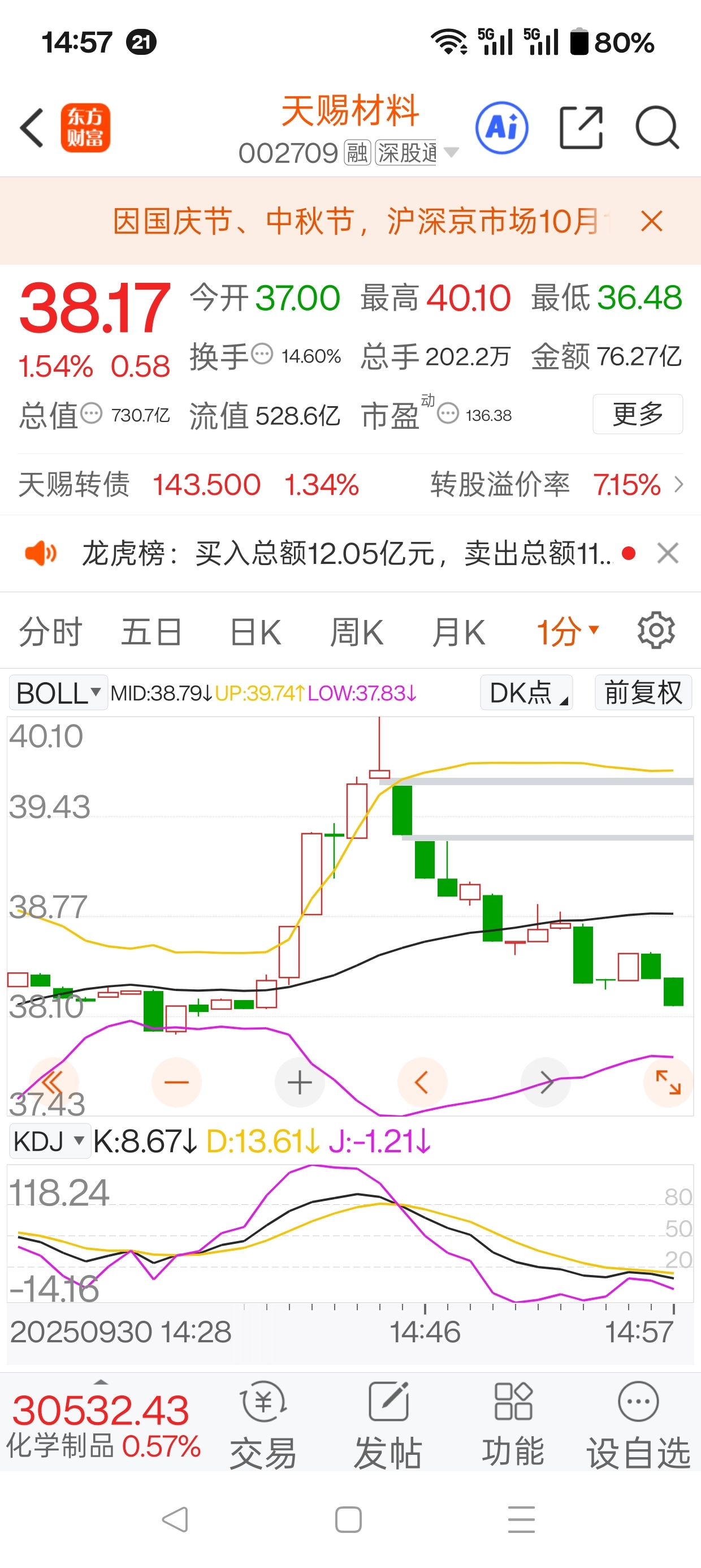 $天赐材料(SZ002709)$ 尾市集合竞价能卖出的赶紧卖出过节有钱了啊