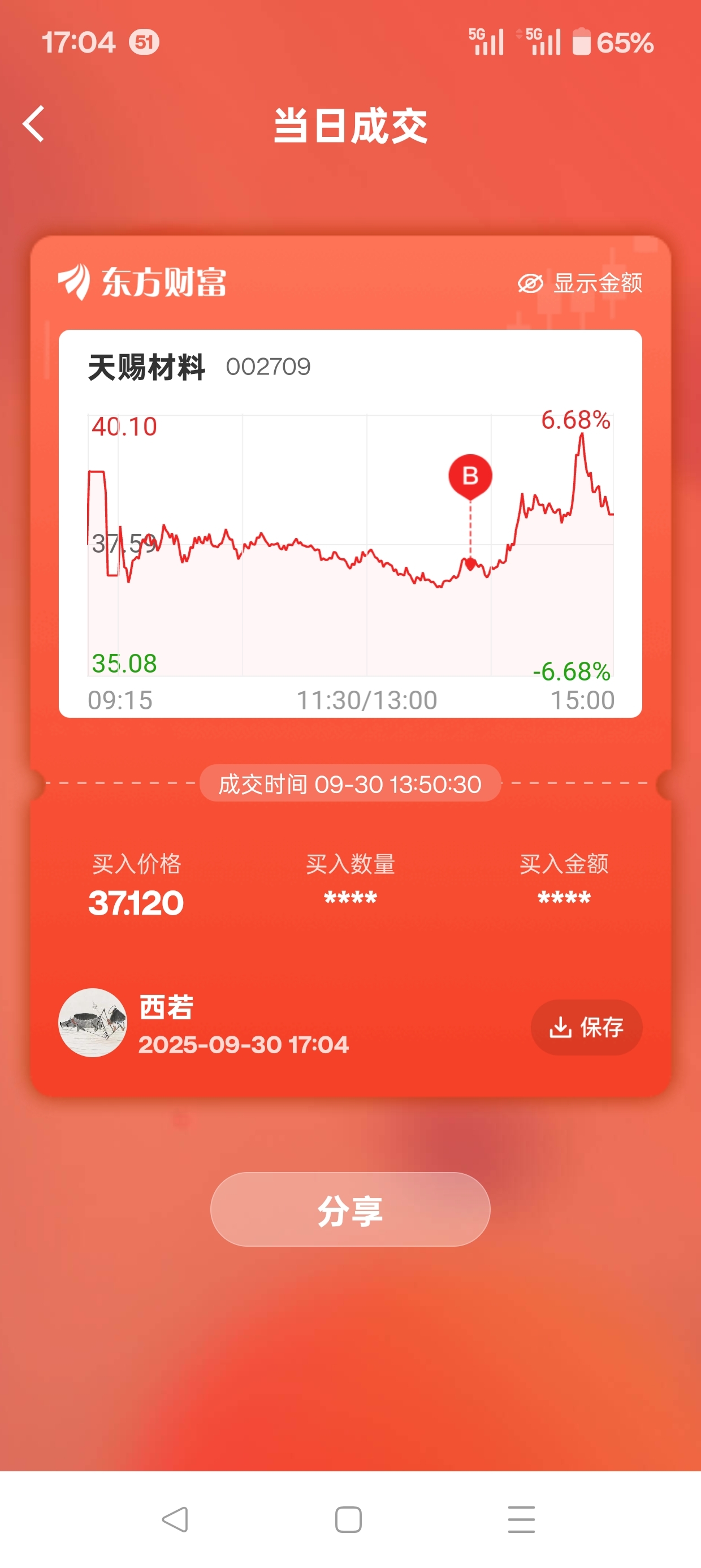 $天赐材料(SZ002709)$ 完了,追高了。节后一个低开就可能闷杀了。追了个区间高点。