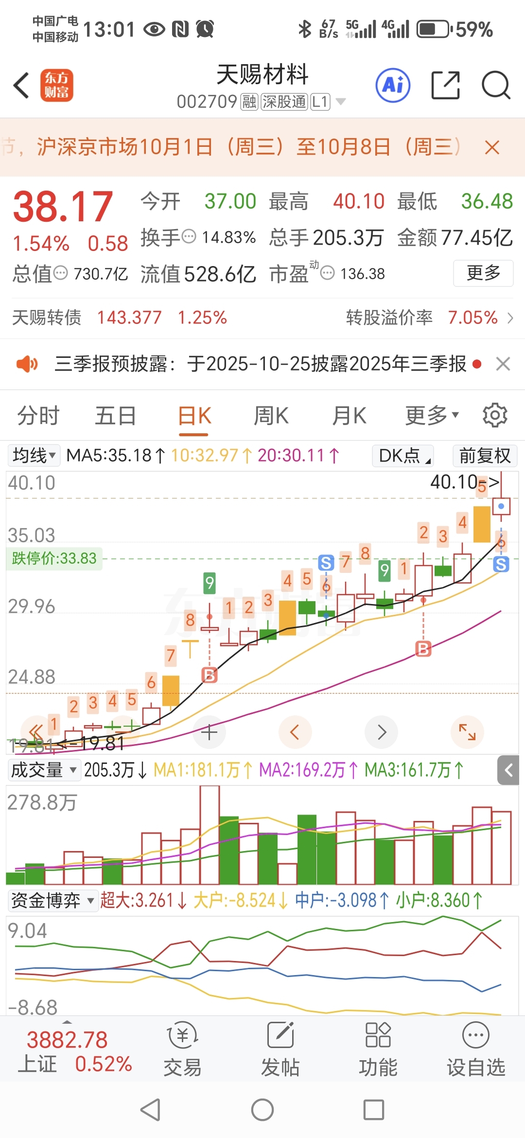 $天赐材料(SZ002709)$ 尊敬的师长你们好:我是小白向大家求教,日k里123456789数字标的什么意思啊?还有三条线显示上面黑线,中间黄线,下面红线各代表什么呀?非常感谢。