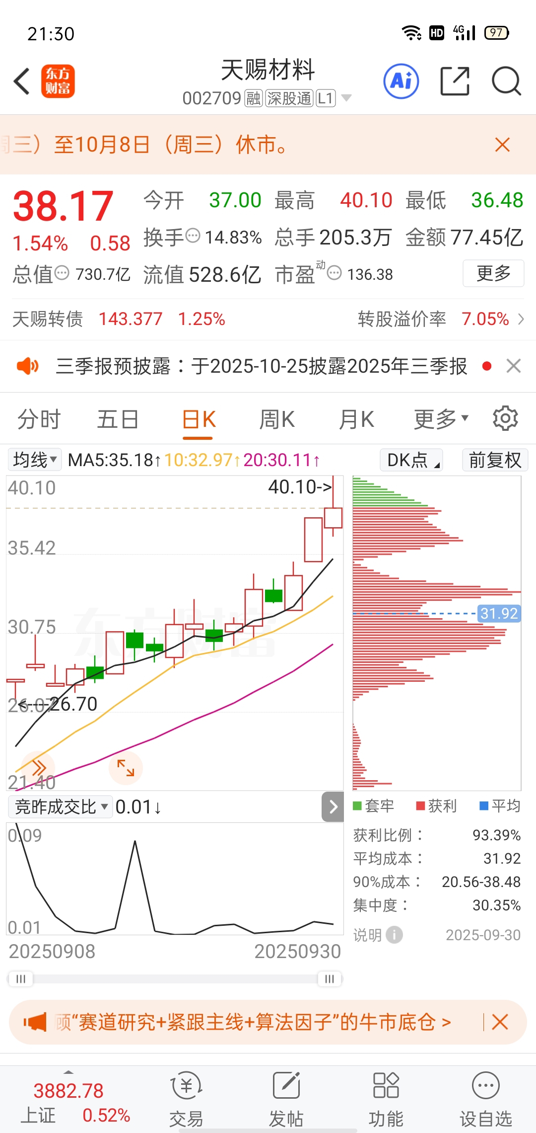 $天赐材料(SZ002709)$ 目前算不算顶部避雷针