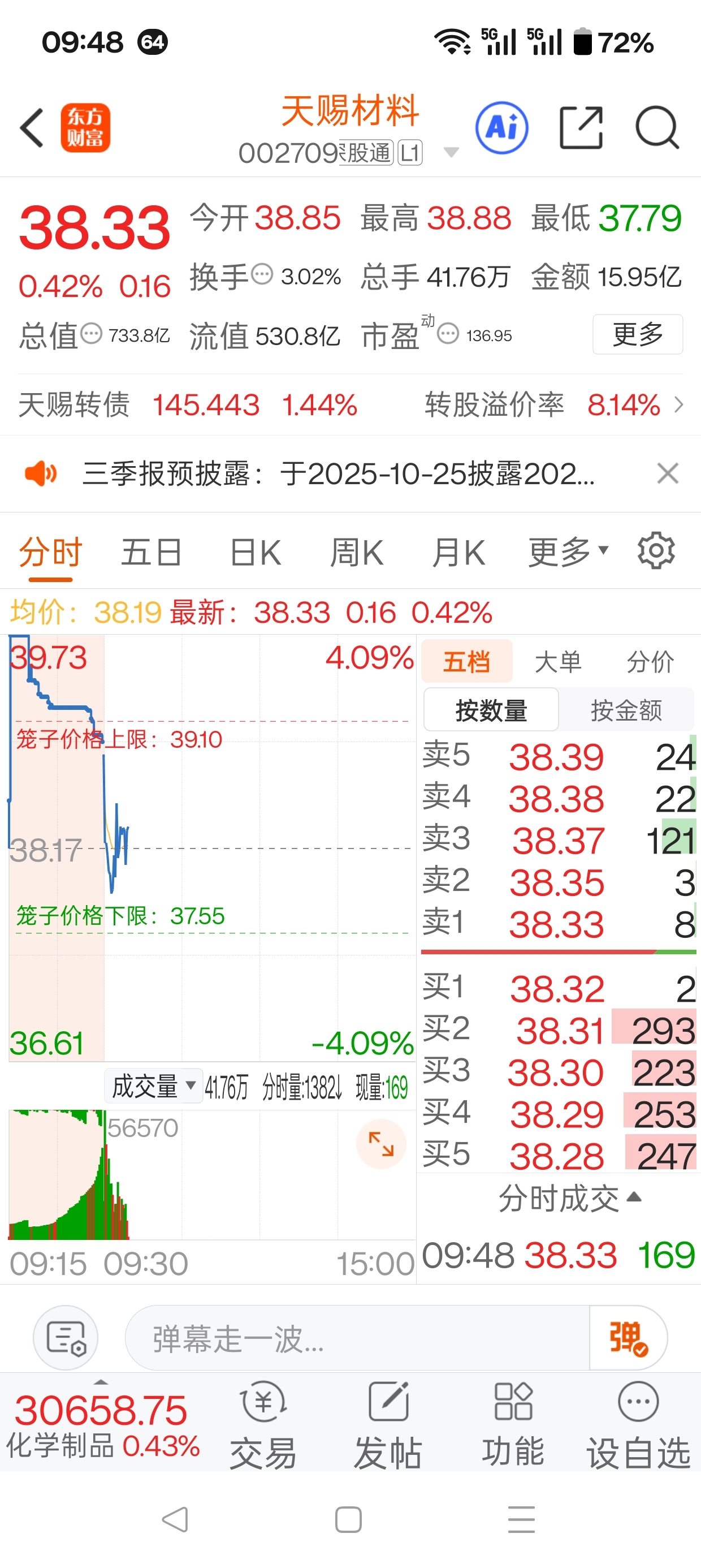 $天赐材料(SZ002709)$ 加仓,等会38.20+买入38.20追击买入