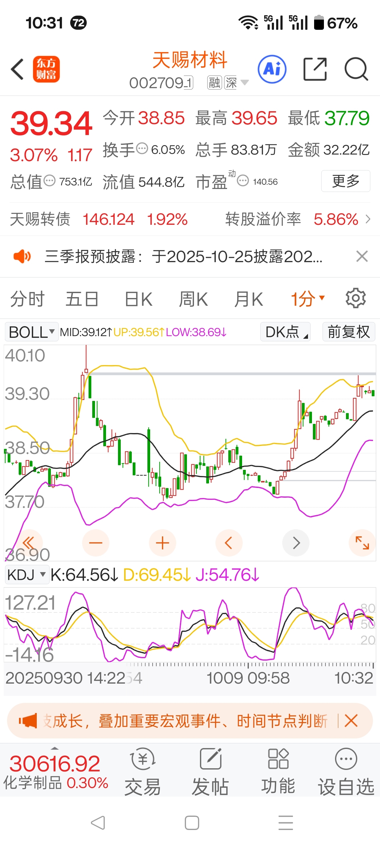 $天赐材料(SZ002709)$ 可以开始考虑卖出了。39.30的缺口补了,39.65那里的缺口补了一定下跌。现在卖出