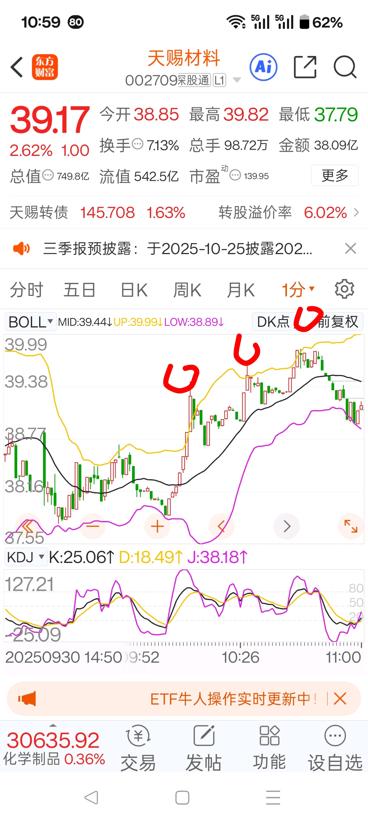 $天赐材料(SZ002709)$ 股价第三次触摸上轨线必须卖出。买出来看,大不了再买回来。