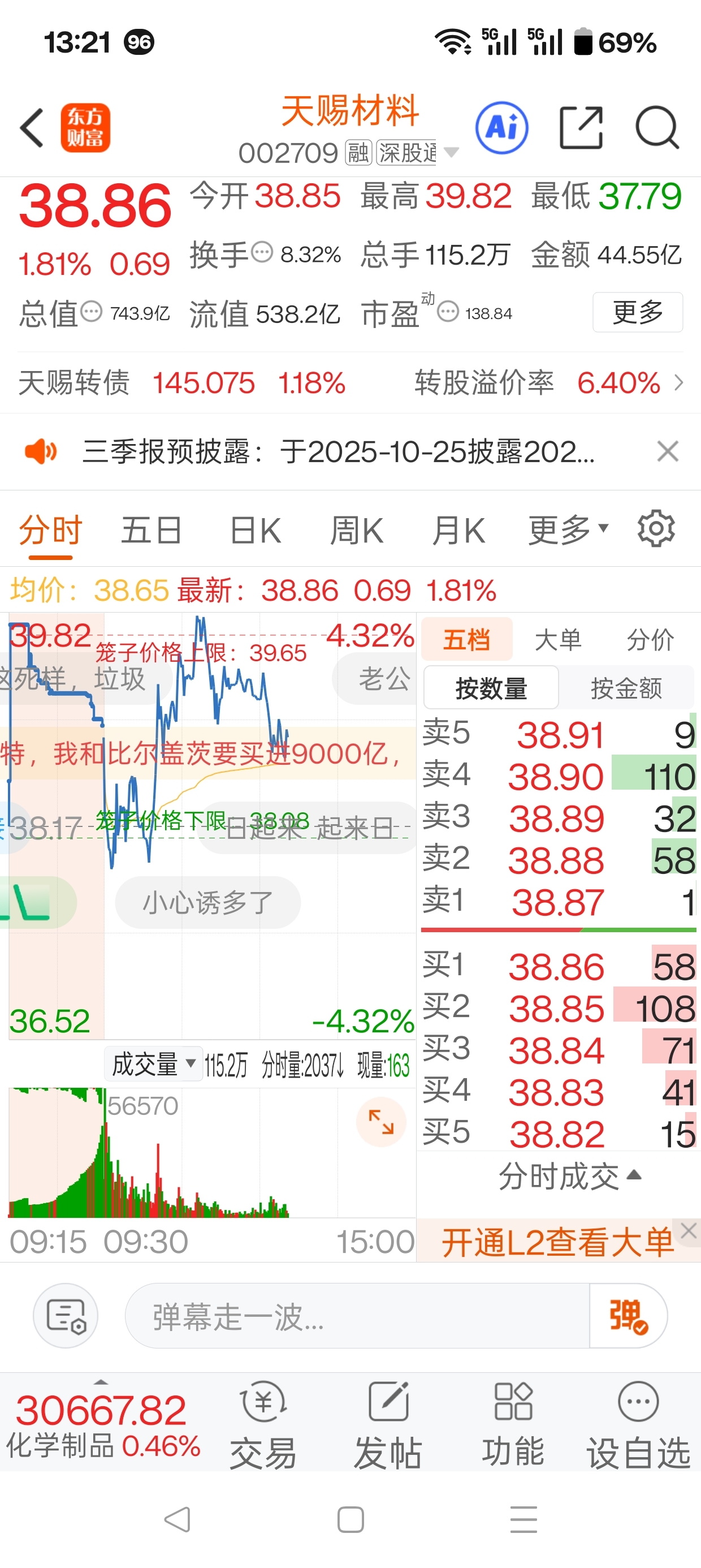 $天赐材料(SZ002709)$ 小型的头肩顶出来了。38.8以上随便卖出吧