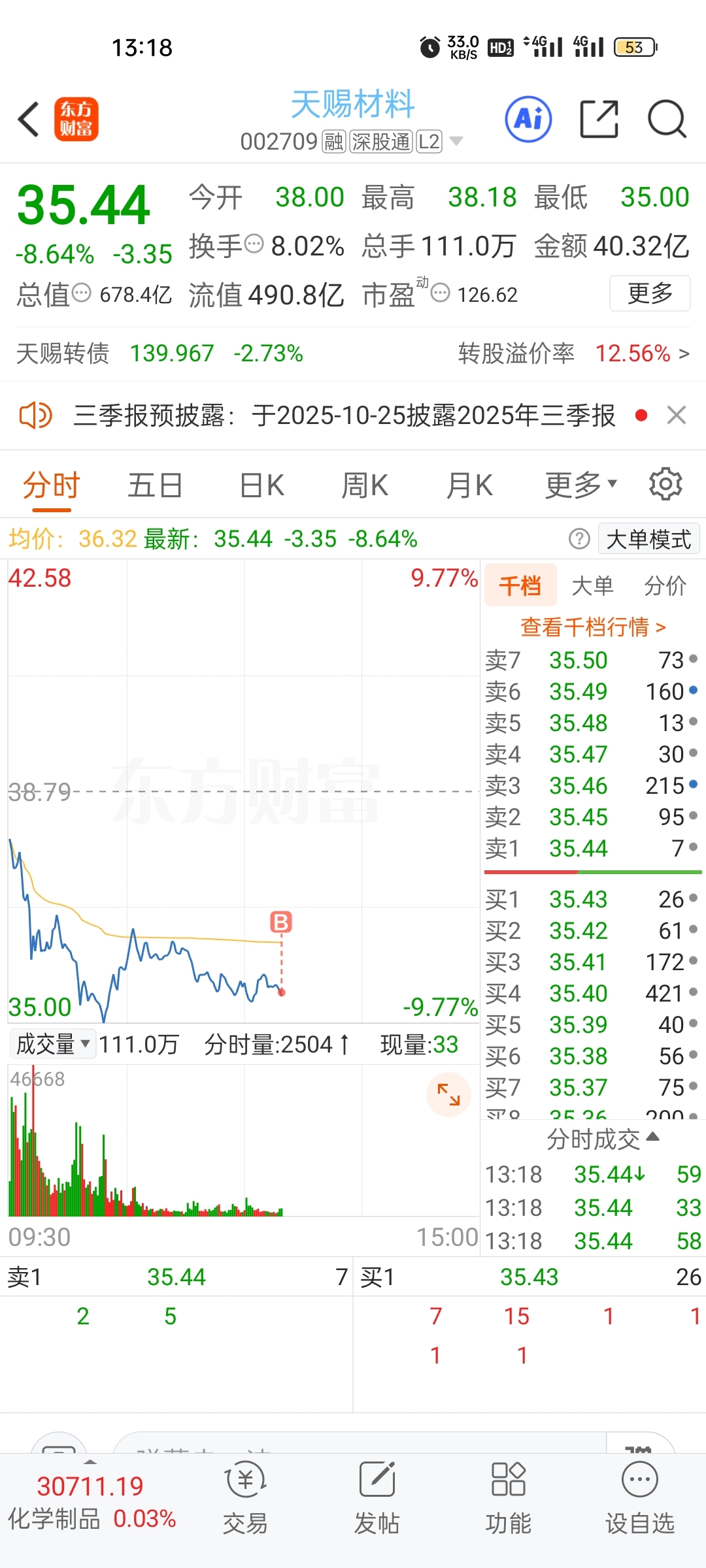 $天赐材料(SZ002709)$ 上次赚了20多个点,这次我又回来了,别让我失望啊