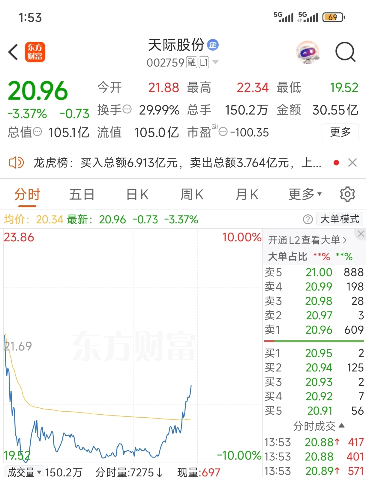 $天赐材料(SZ002709)$ 主力够狠的。天际大回升了