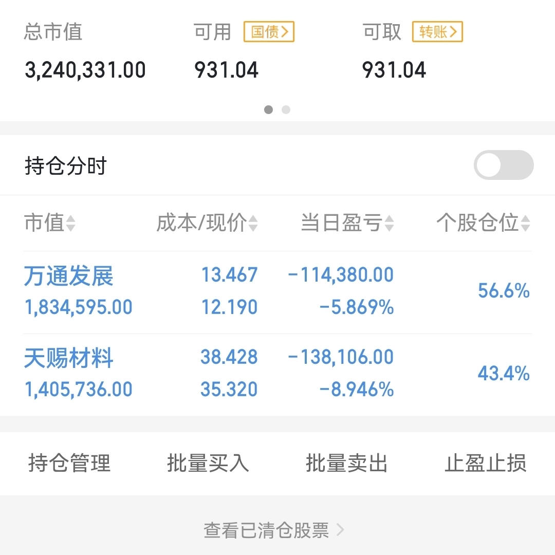 $天赐材料(SZ002709)$ $万通发展(SH600246)$ 哎呀#炒股日记# #收盘点评#