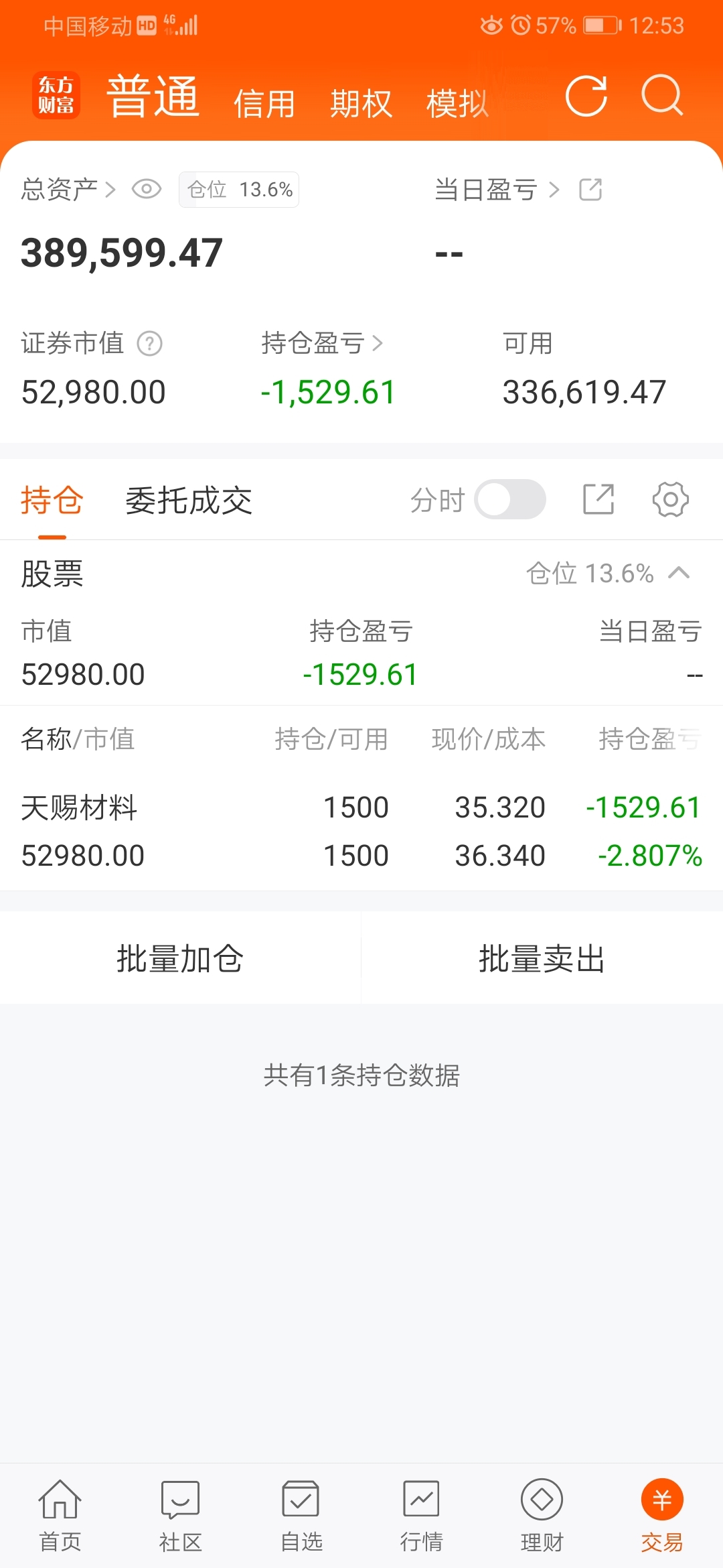 周四大盘大涨,天赐冲高没出来,后面回落勉强涨了一个来点,可惜没出来,还好仓位轻,