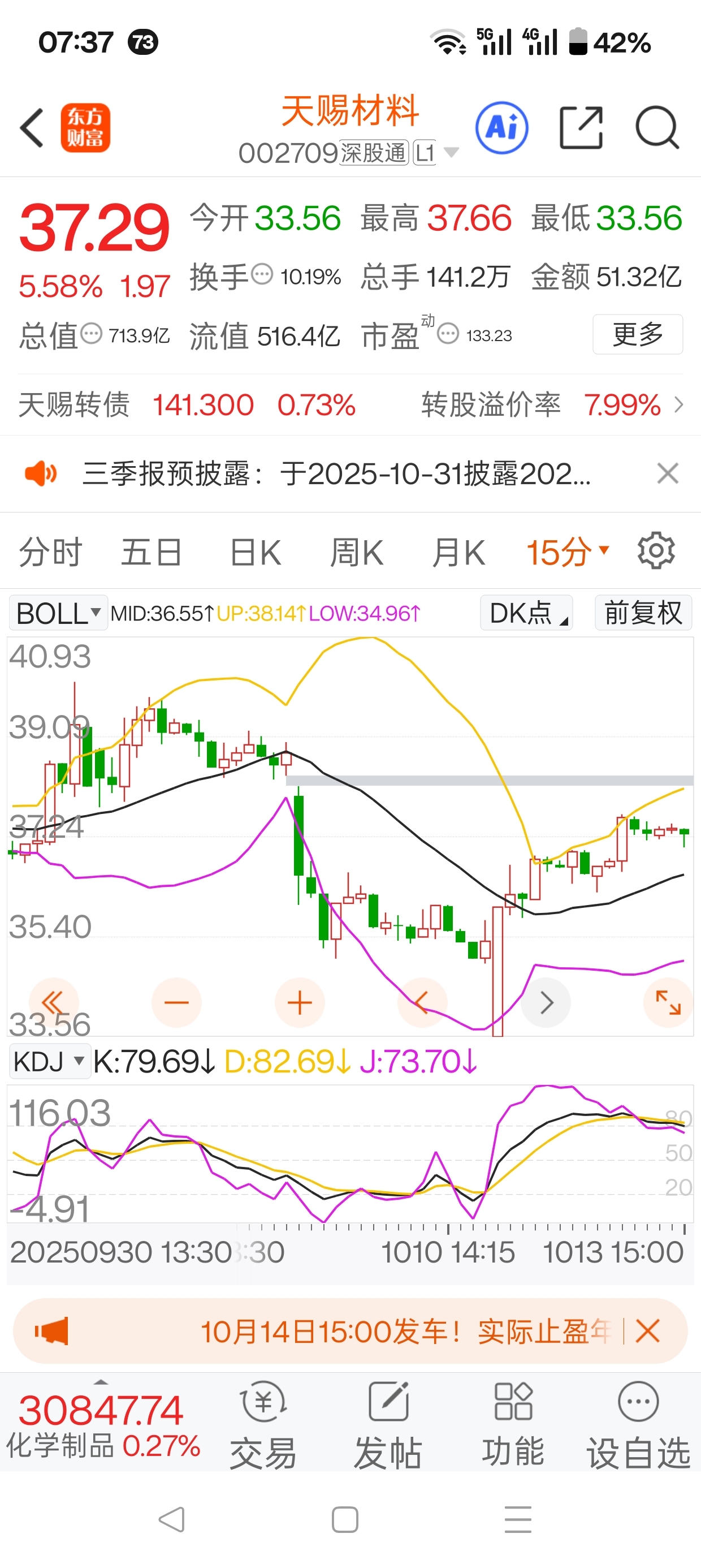 $天赐材料(SZ002709)$ 2025.10.14早盘第一买点36.70,第三买点36.27
