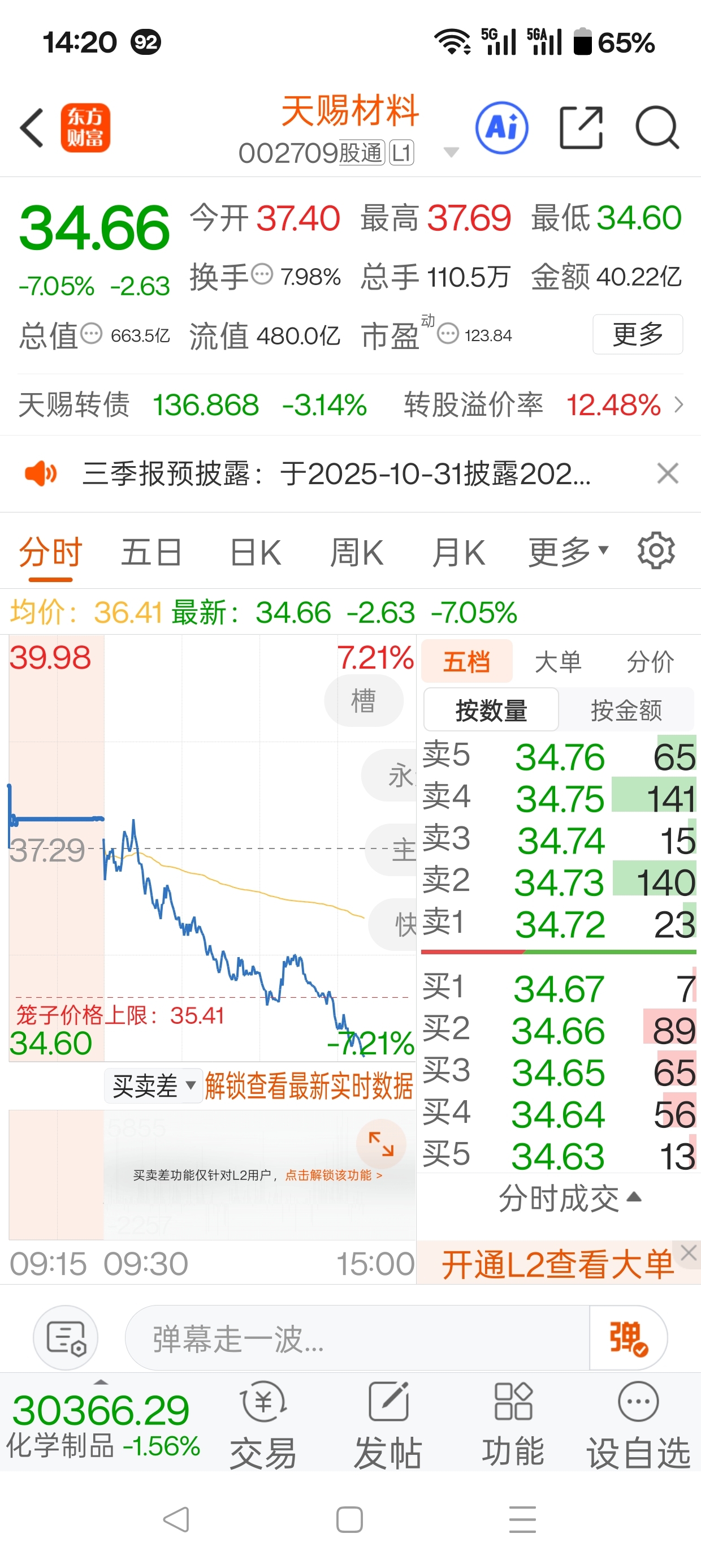 $天赐材料(SZ002709)$ 说好的34.17,快到了,不急