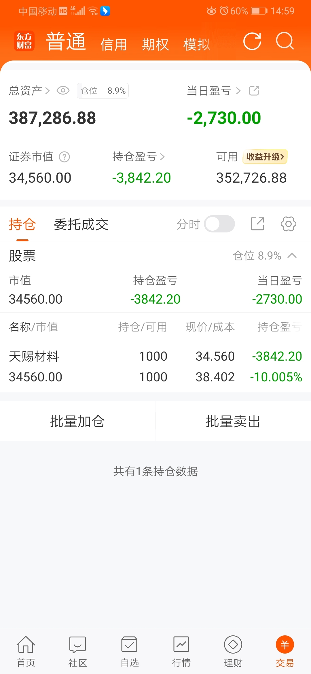 $天赐材料(SZ002709)$ 好可怕,早盘后悔没出来,早盘时大盘高开高走股票不跟,感觉就不对劲,还好留了一点点仓位,不加仓