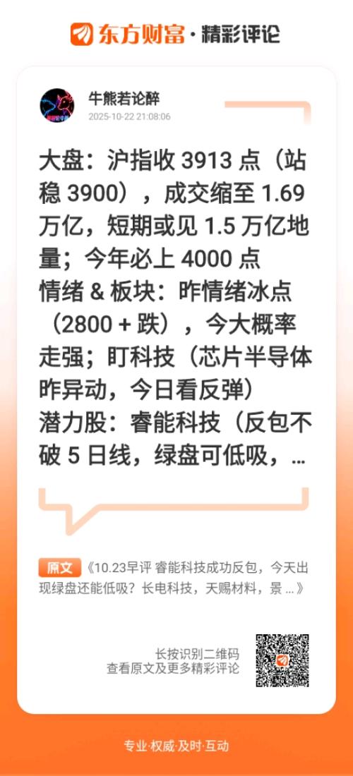 昨天三大指数再度走弱,但上证指数表现亮眼:竞价开盘跌破 3900 点,收盘回升至3913 点,重新站上 3900 点关键关口。重点关注到昨日成交缩量 2024 亿,总成交仅 1.69 万亿,按此走势,短期或回踩至 1.5 万亿左右(近期真正地量水平),届时有望开启新主线,推断时间线或在 11 月左右,4000 点也可能突破。观点明确:指数今年必上 4000 点。