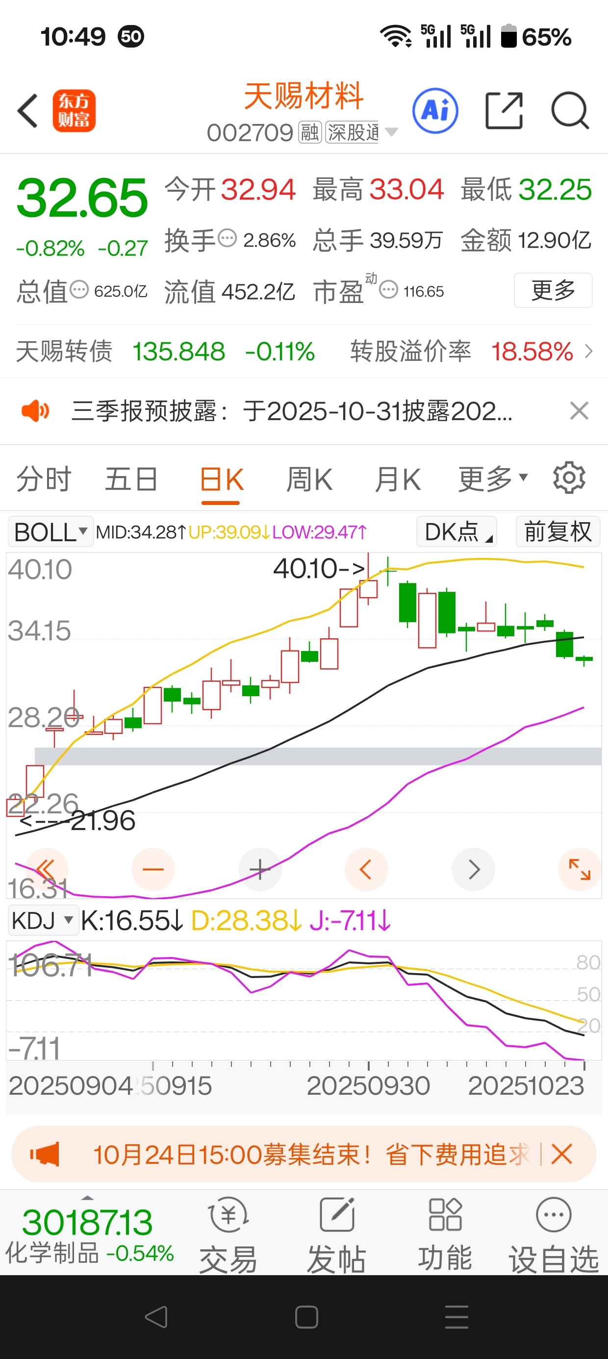 $天赐材料(SZ002709)$ 下跌抵抗型走势。能不能抵抗住?大家猜吧。下的缺口,很有诱惑力啊