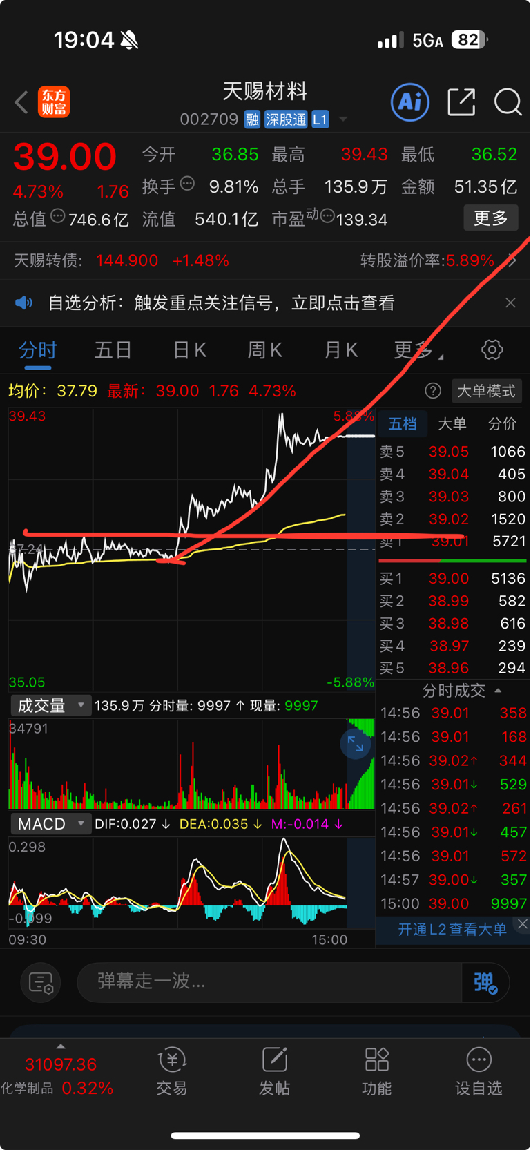 $天赐材料(SZ002709)$ 主力37块多吸了不少筹码,继续拿着,估计能到60