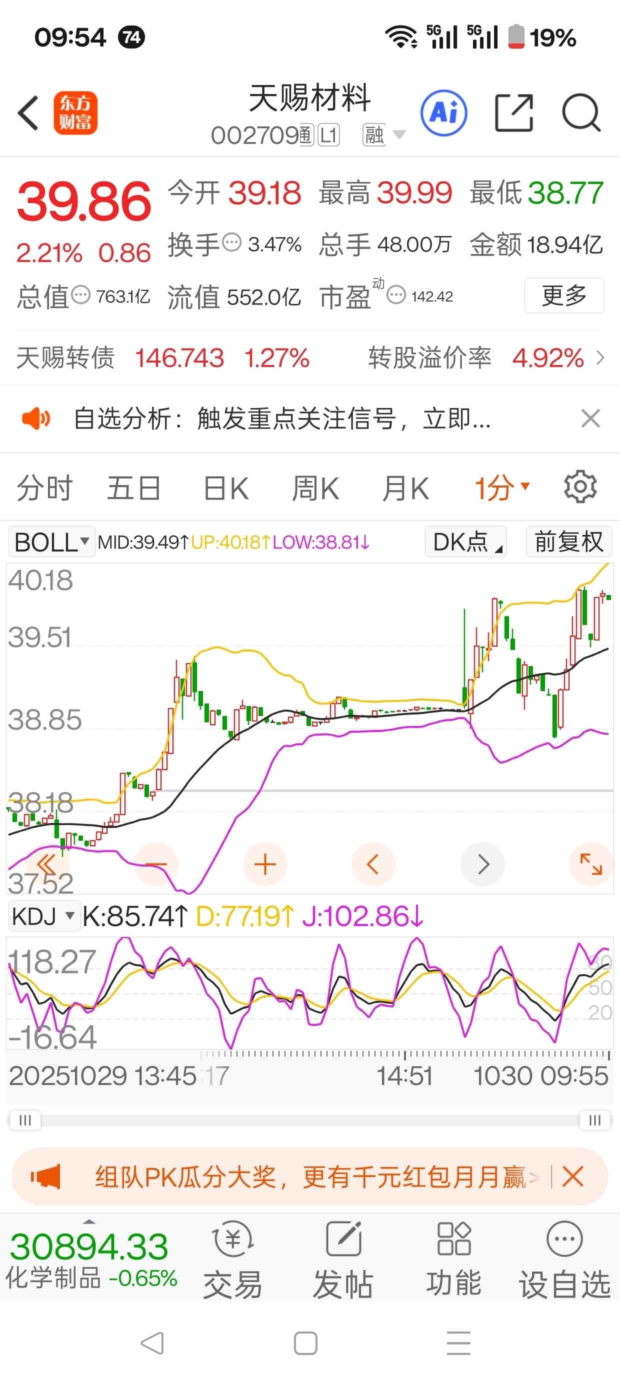 $天赐材料(SZ002709)$ 出现深v,卖出