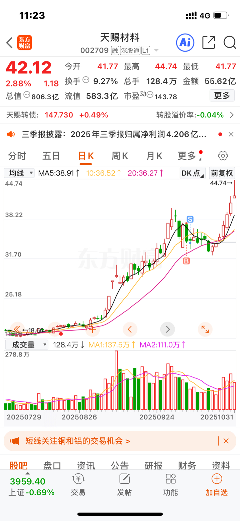 $天赐材料(SZ002709)$ 我这算是炒股了吧!我感觉这才是普通人炒股的常态