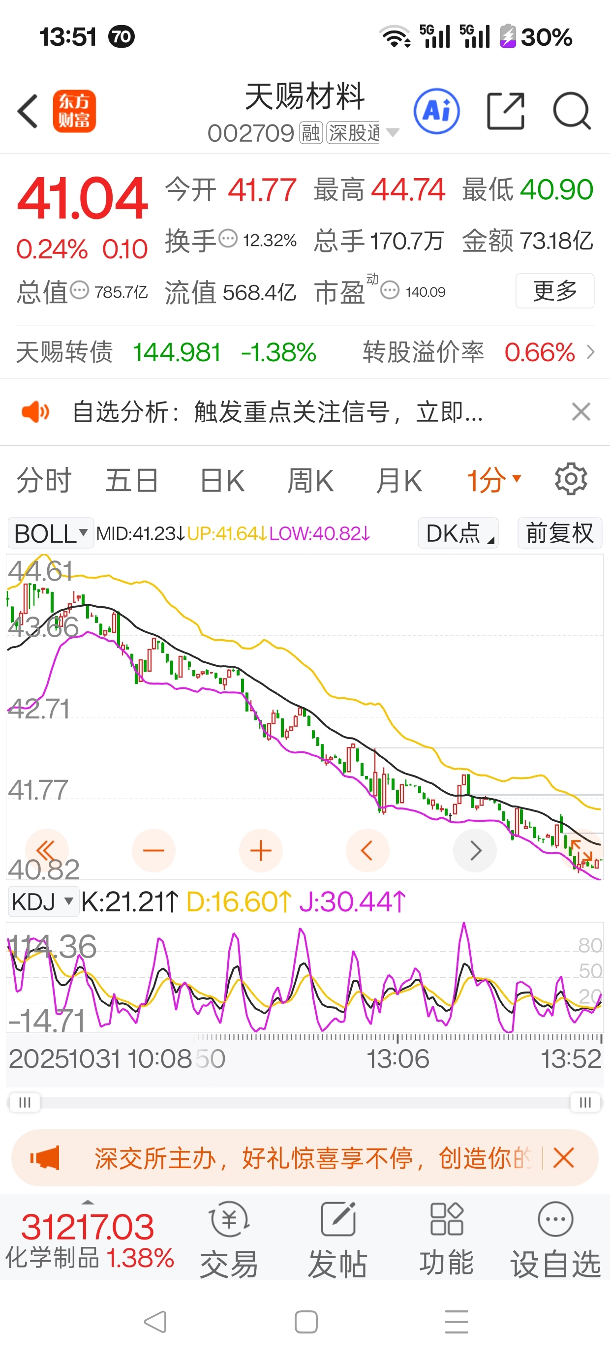 $天赐材料(SZ002709)$ 刚才了一下绿了,到了40.90。可以补仓了。