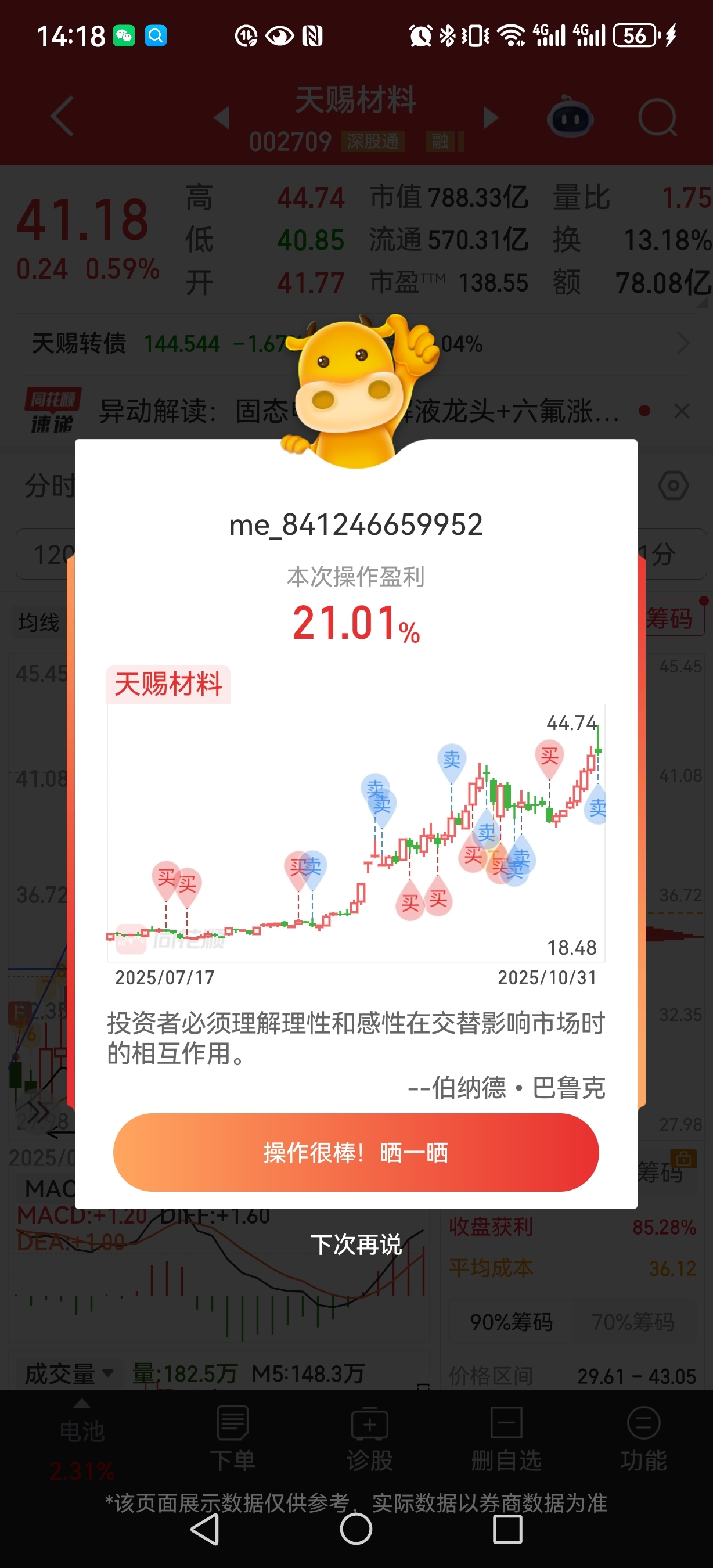 $天赐材料(SZ002709)$ 第一波翻倍,第二波20个点,就这样吧,等你们新老机构交接完,我再来