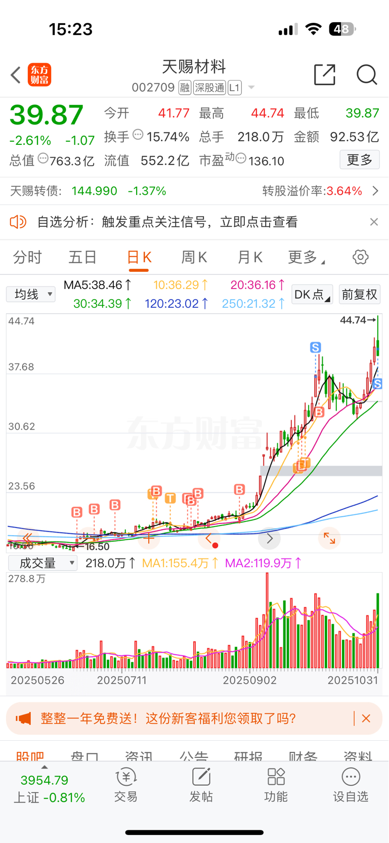 $天赐材料(SZ002709)$ 今天走势看不懂 本金走了 留下利润 长线看好