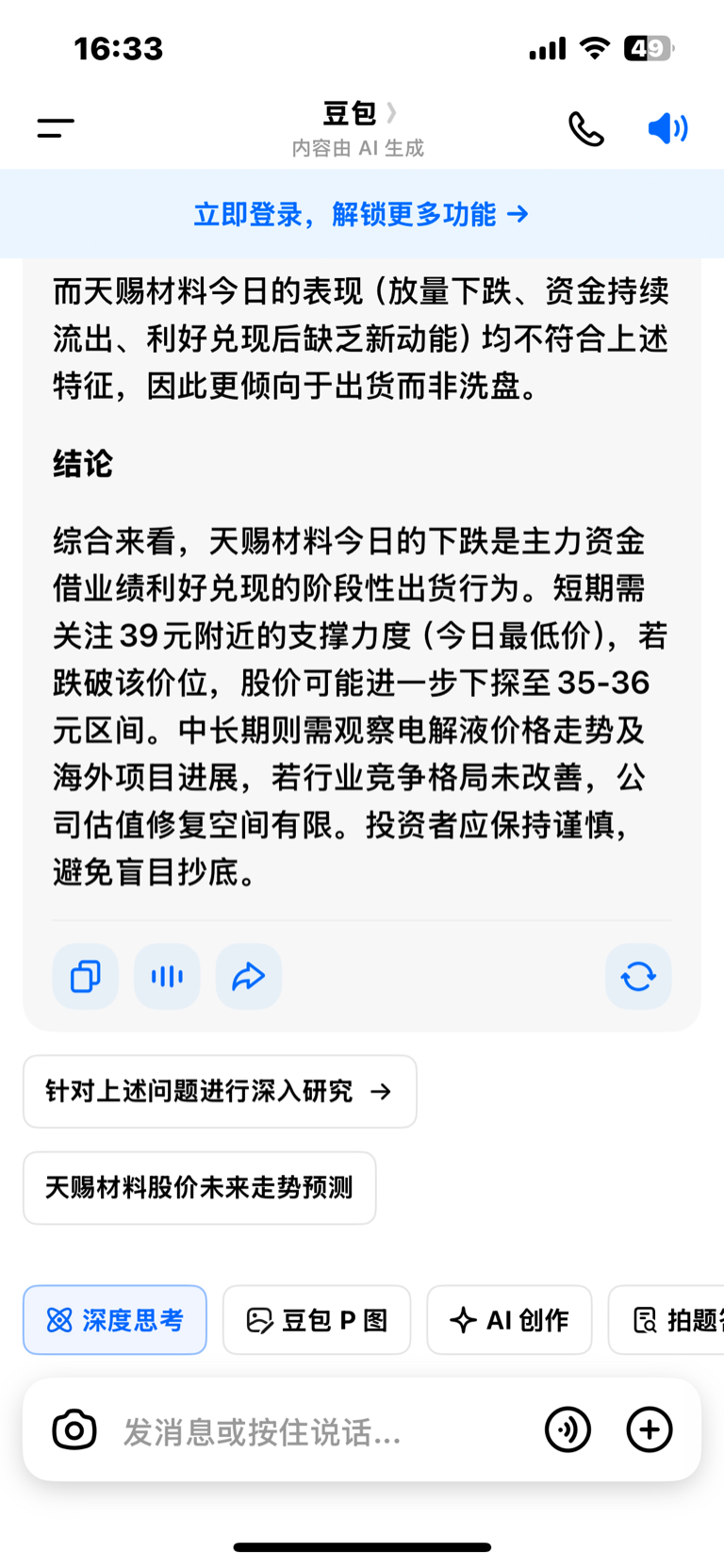 $天赐材料(SZ002709)$ 周一怕是割肉了 各位