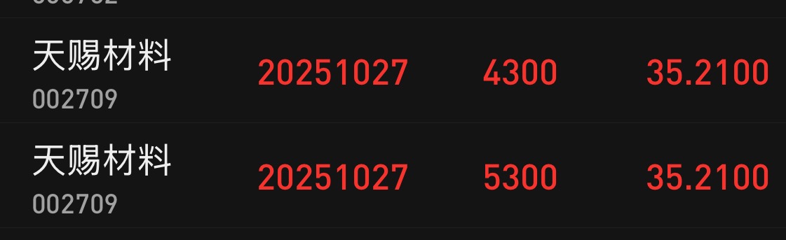 说实话我太喜欢天赐这个股票了四天9.7万,10.27收盘35.21买的做了两次T