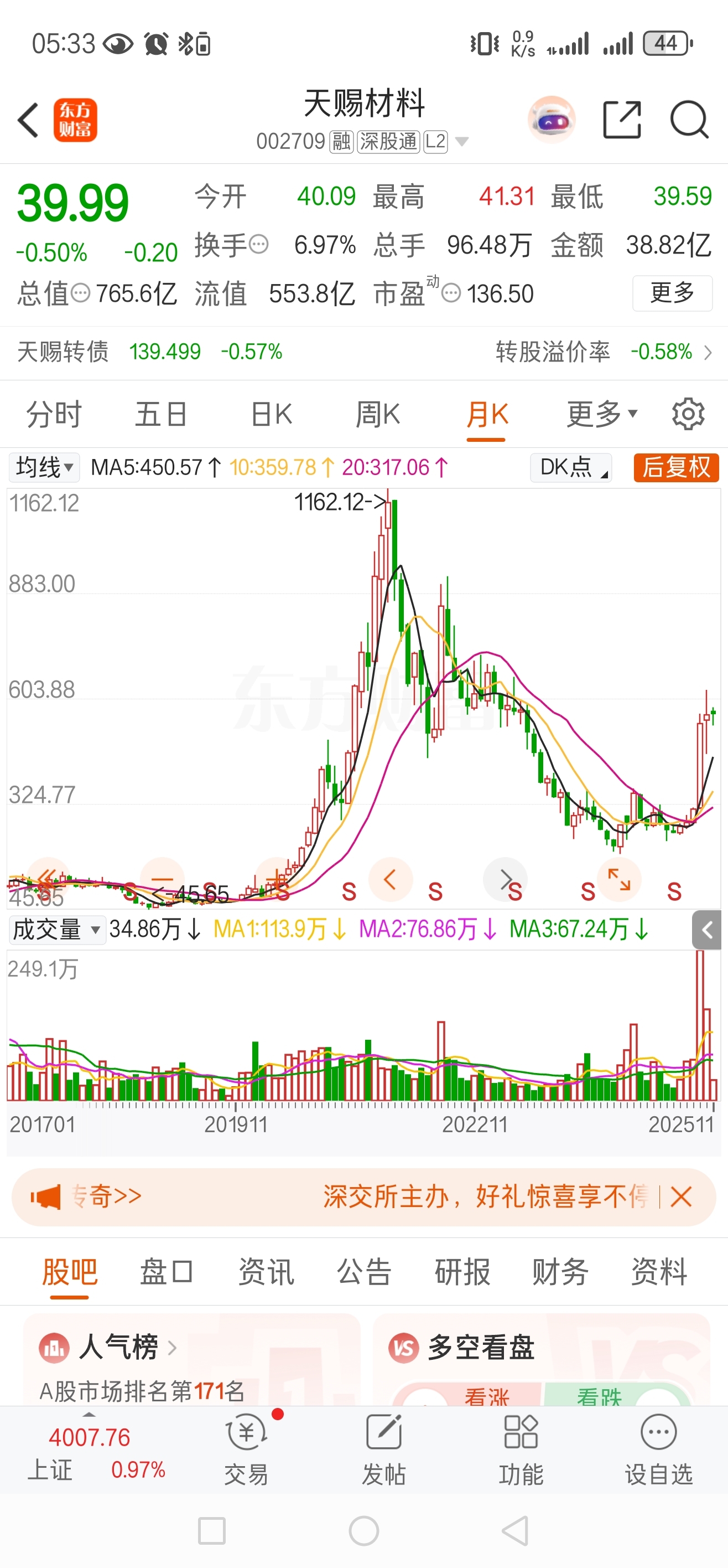 $天赐材料(SZ002709)$ 复权这么贵