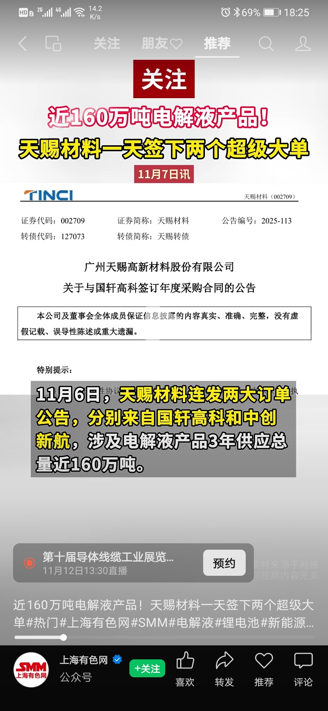 $天赐材料(SZ002709)$ 因为这个涨的呢。