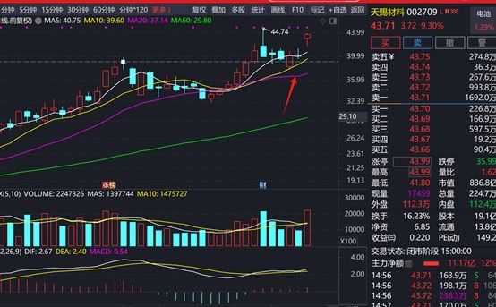 天赐材料周五跳空高开,大涨9.30%,且放大量。已有仓位继续持有观察即可,如果后