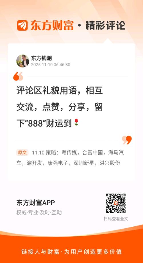 粤传媒(002181):股价是突破前高后,深度调整了两天,目前股价正好是回踩下方的支撑位置,并且上周五的跌停也没有完全封住,毕竟全运会的召开也是市场催化下,今天大概是有向上修复的一个预期。今天股价不破支撑位,可以低西$粤传媒(SZ002181)$