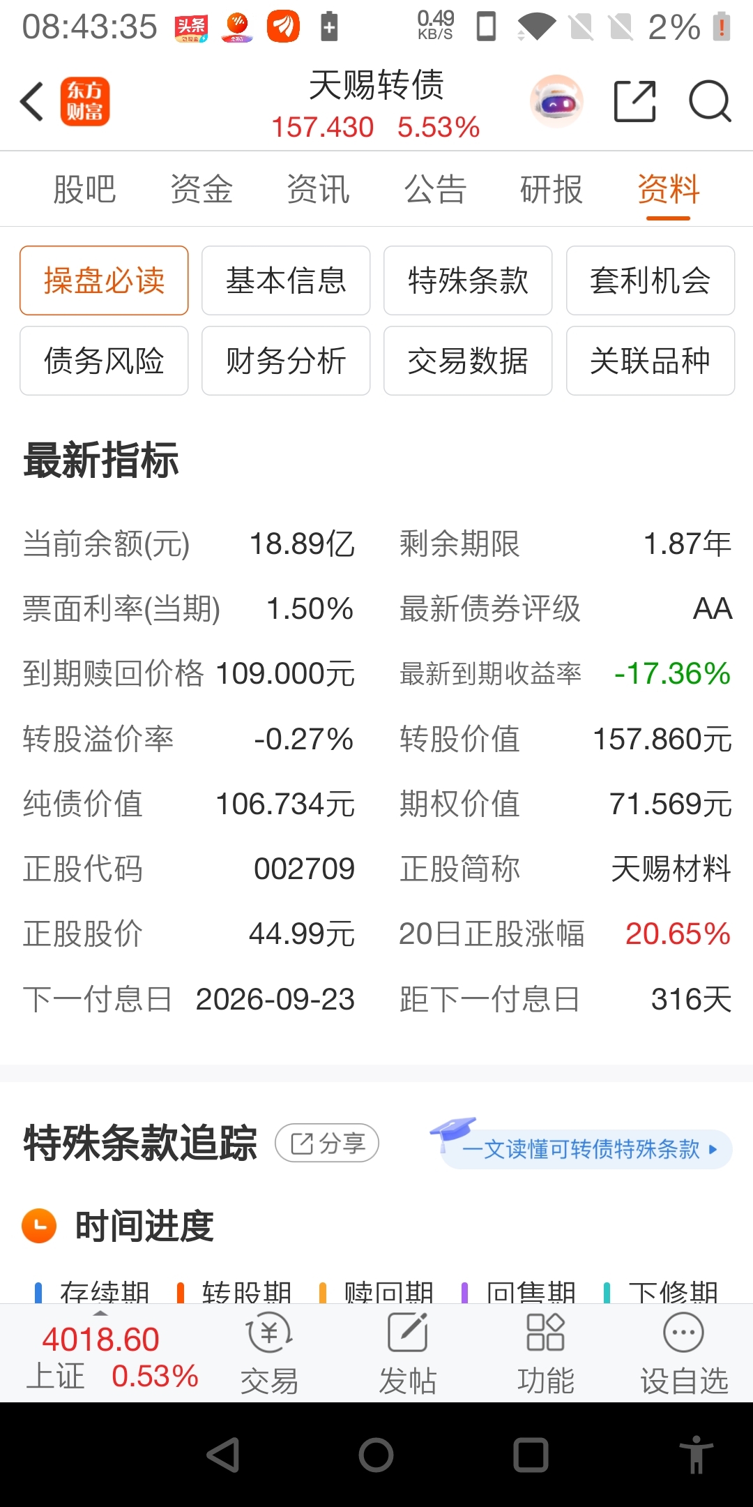 $天赐材料(SZ002709)$ 数据出来了,昨天转股2.3 个亿。可以确定,大部分是庄家干的。今天晚上公告,转债满足强制赎回条件了。防止历史重演。