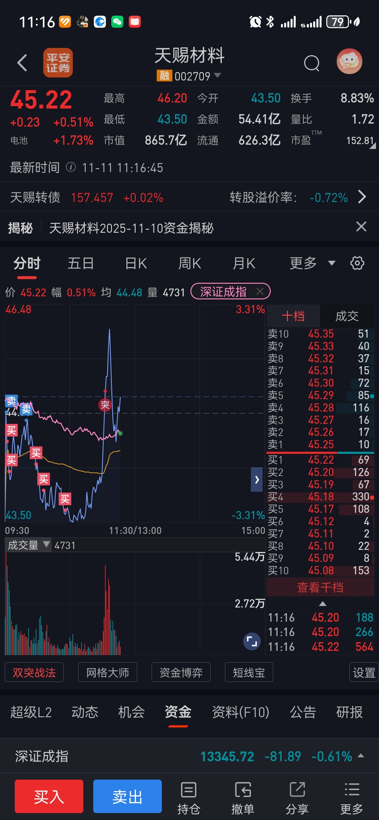 $天赐材料(SZ002709)$ 已经操作完毕了,不能买卖了,满仓中,听天由命了。